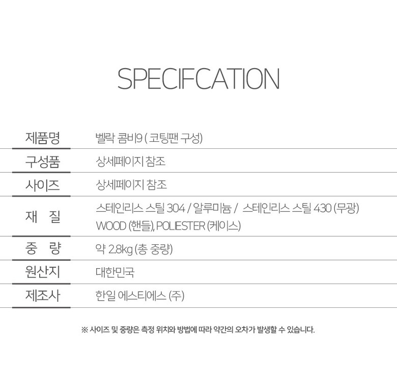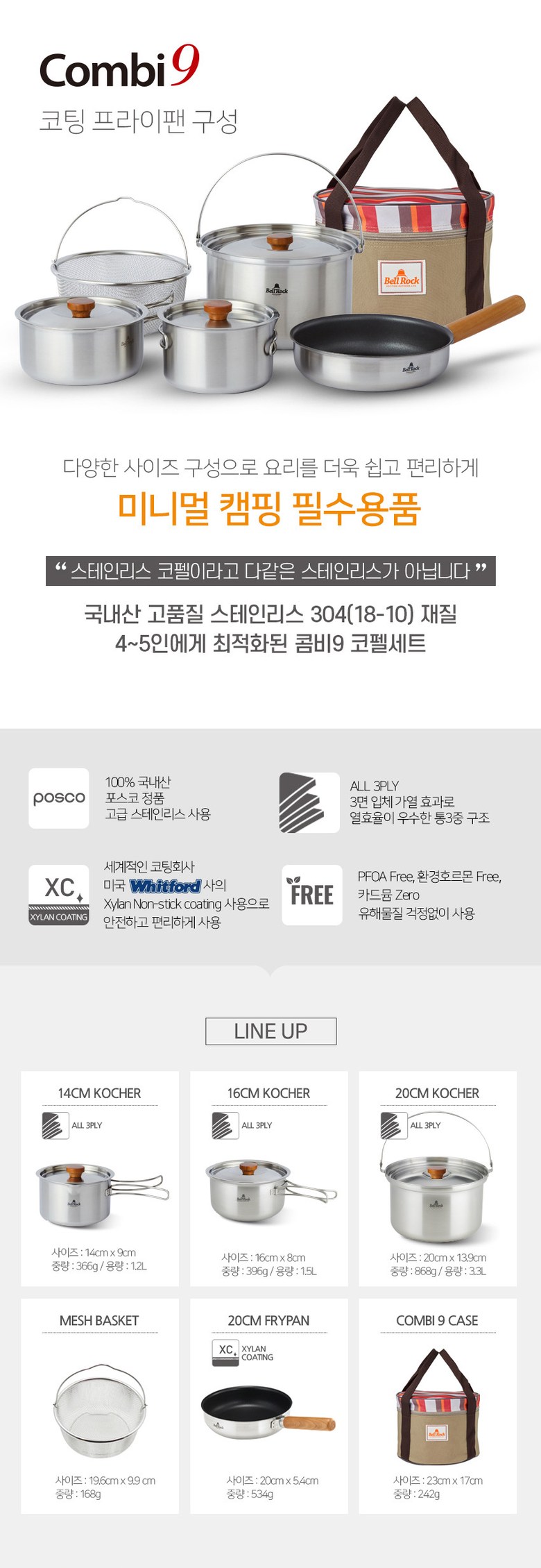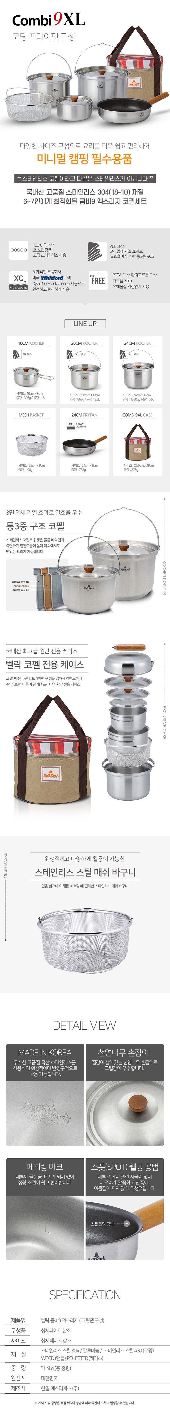 벨락 콤비9L 9XL 캠핑 코펠 세트 스테인리스 코팅