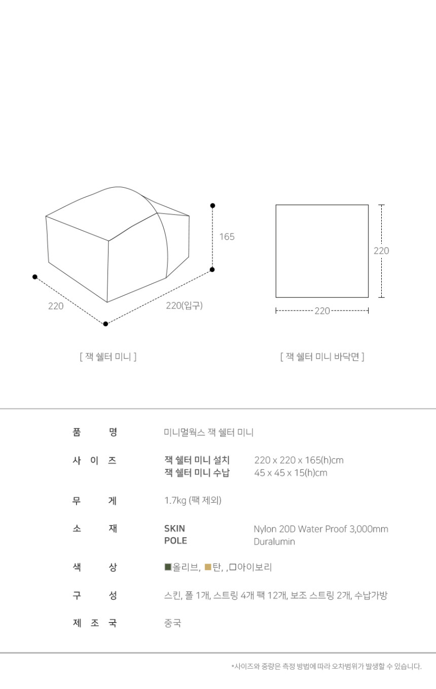 미니멀웍스 잭 쉘터 미니 백패킹용 쉘터