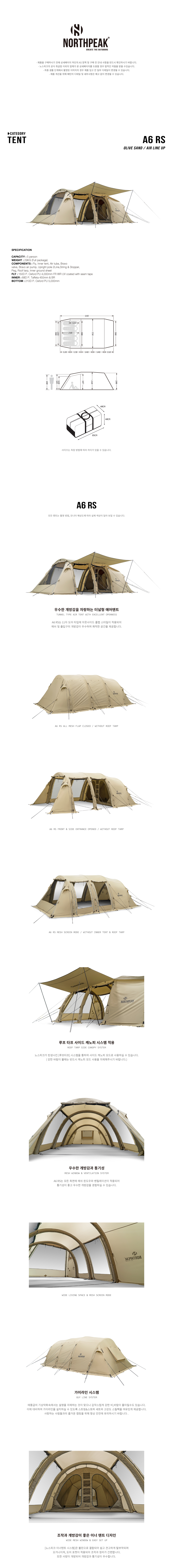 노스피크 A6RS_소이밀크,올리브샌드 대형 에어텐트