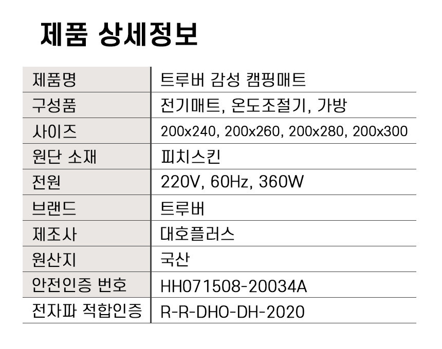 트루버 캠핑용 전기장판 240 4인용 대형 전기 탄소 매트