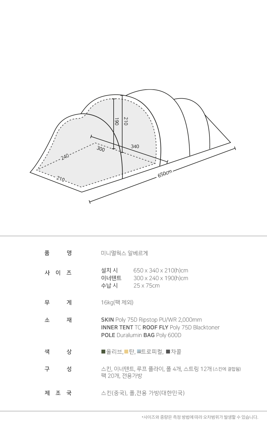 미니멀웍스 알베르게 터널 텐트 쉘터 23년형