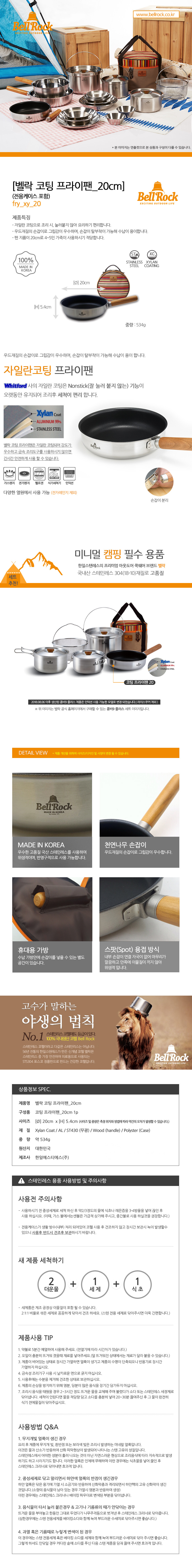 벨락 캠핑 코팅 프라이팬 20cm 가방 포함 손잡이 분리형