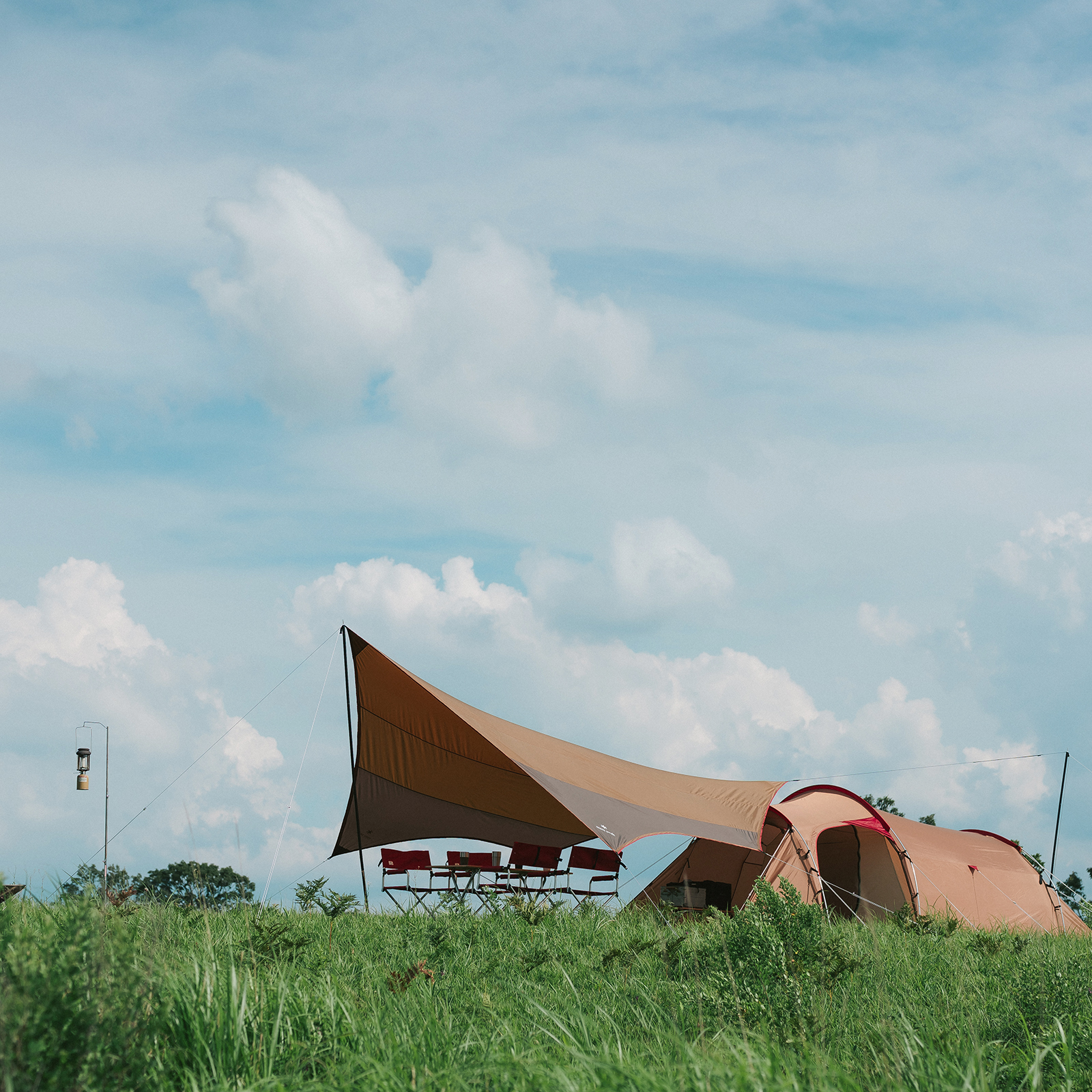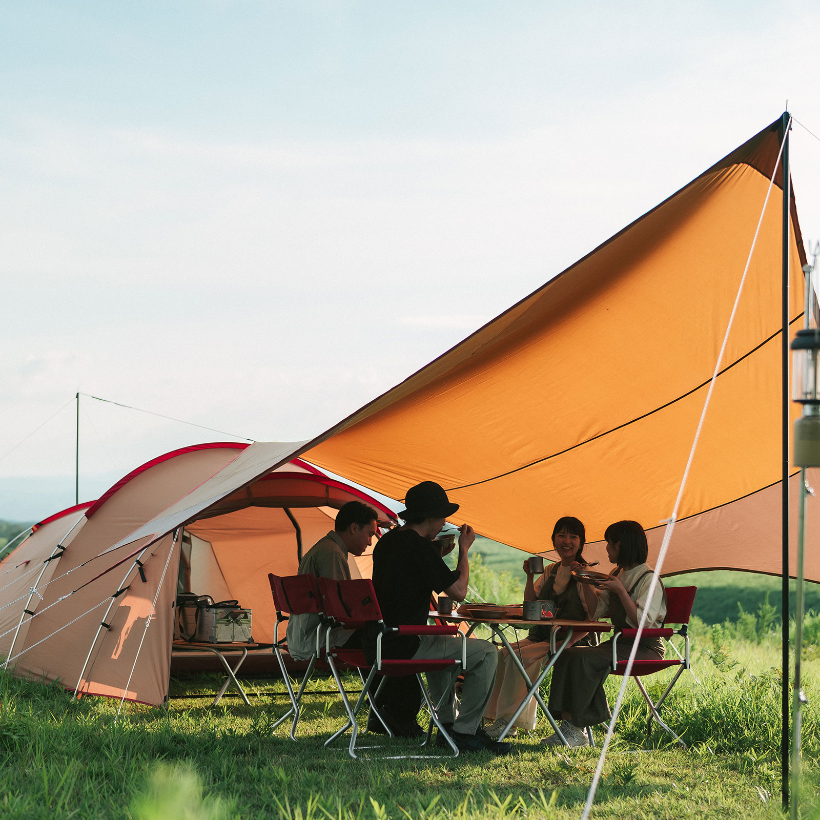 낮에는 차양으로, 또 비나 바람을 피하기 위해서도 타프는 중요 요소. 가족이나 동료와의 단란한 시간에 빼놓을 수 없는 아이템입니다.