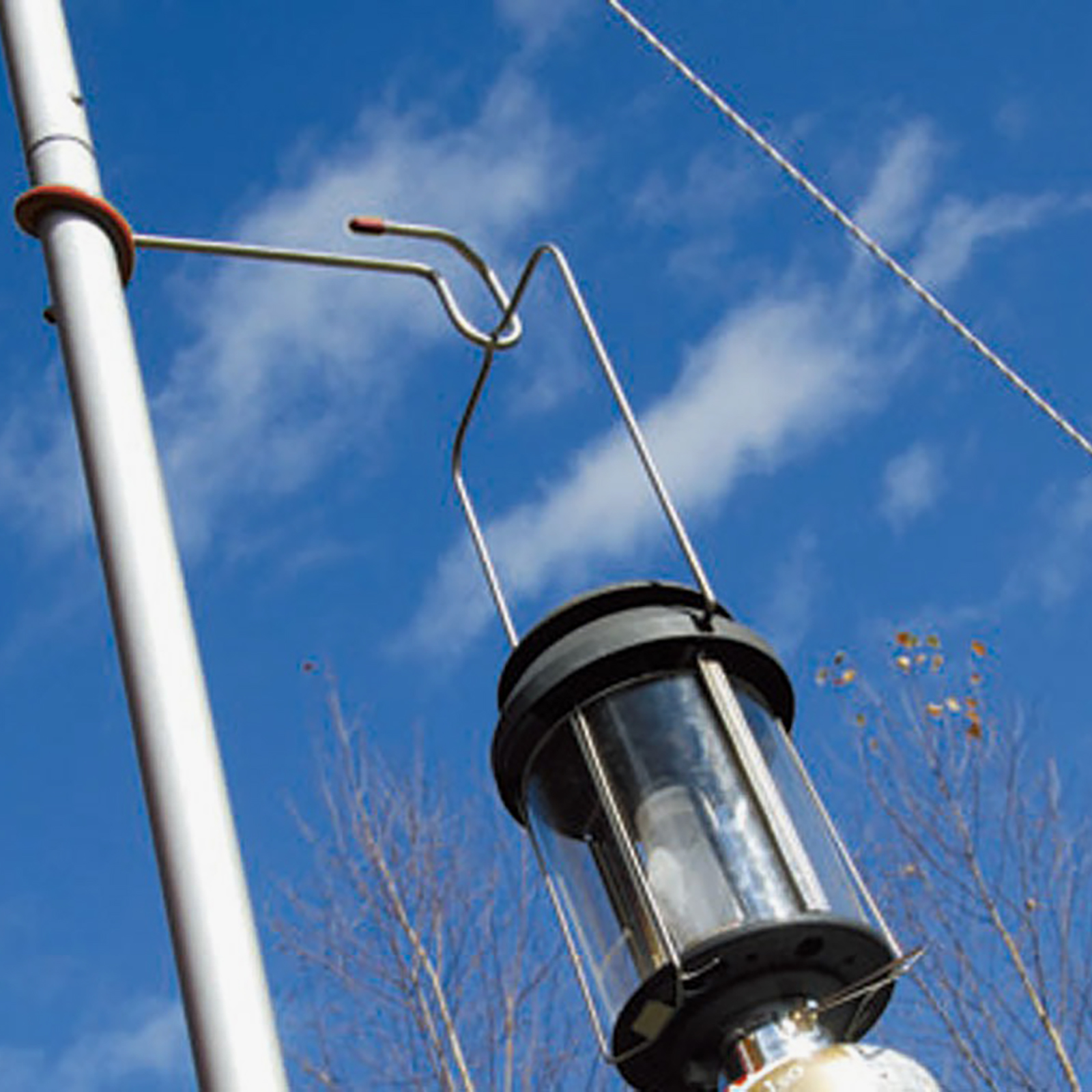 타프 폴대 등에 감아 고정해 사용하는 랜턴용 행거입니다. 랜턴을 고리에 걸면 무게에 의해 고정되며, 고리 부분은 낙하 방지를 위해 루프형 디자인으로 설계되었습니다.