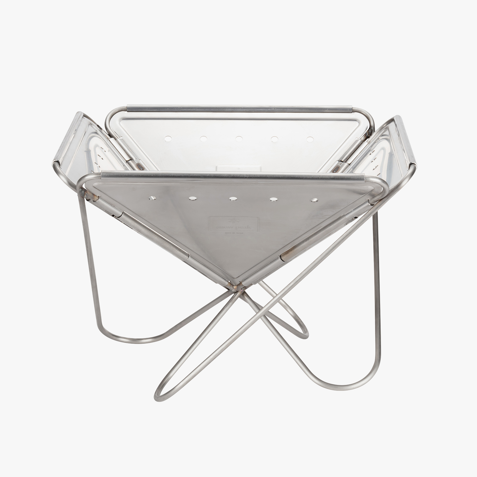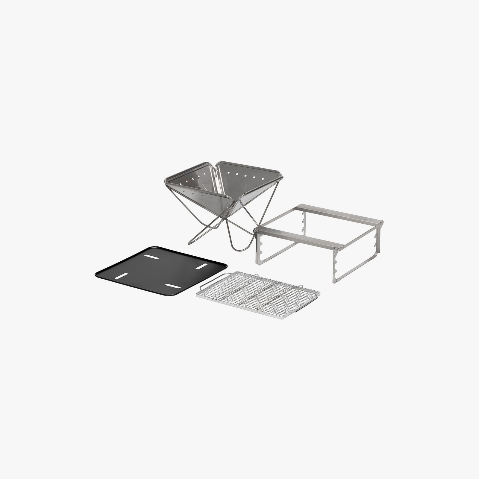 컴팩트하게 운반할 수 있는 구조로 디자인하여 수납 또한 편리합니다. 스테인리스 재질은 강한 열에도 견딜 수 있도록 두께까지 섬세하게 조정하여 디자인하였습니다. 또한 역삼각형 뿔 모양의 디자인은 장작이나 숯의 연소를 촉진합니다.