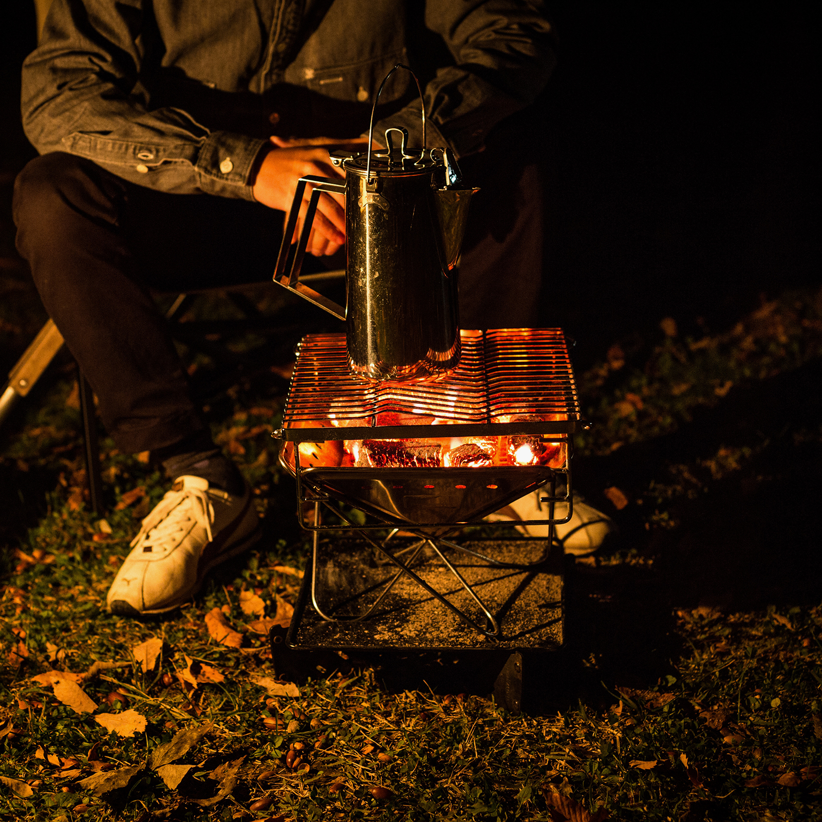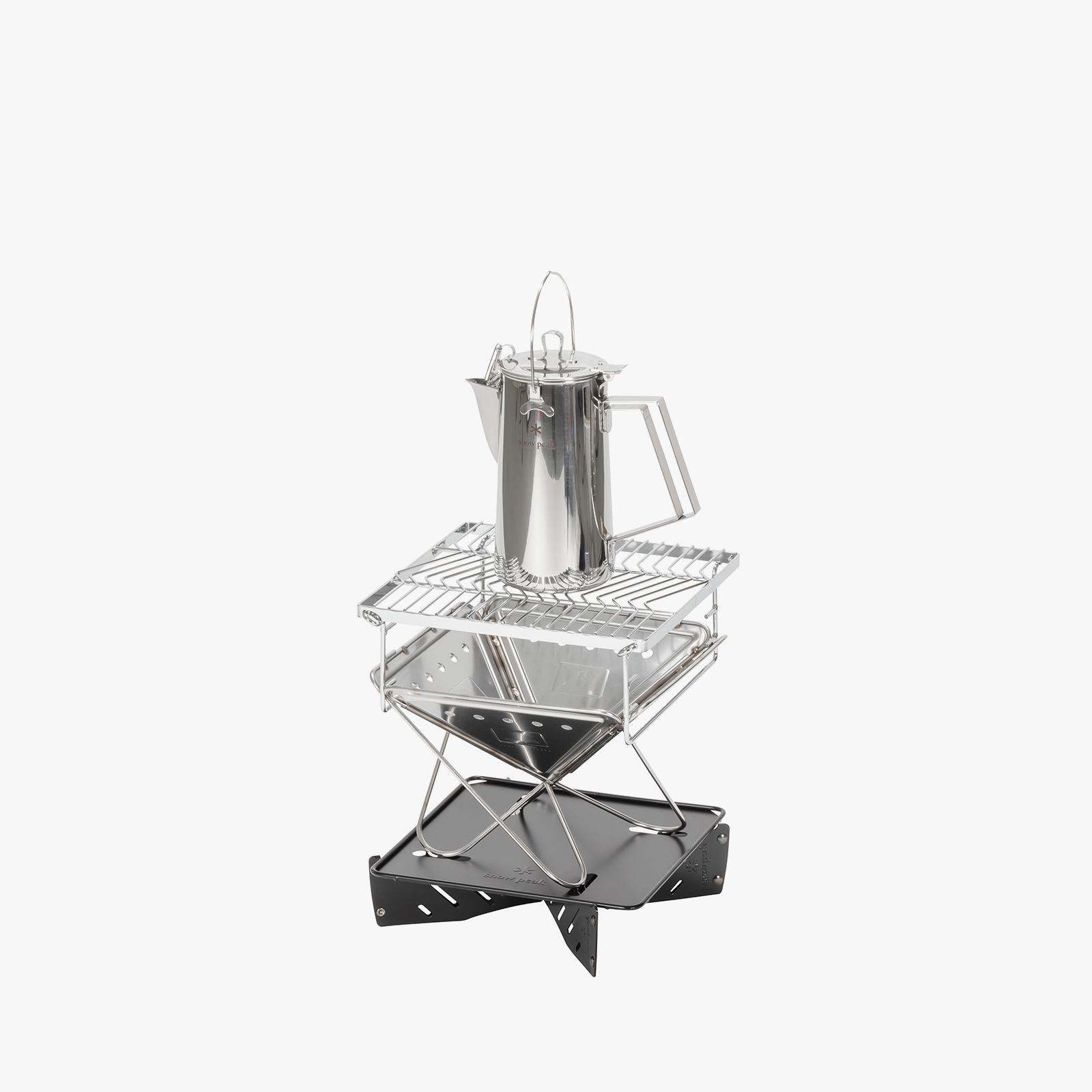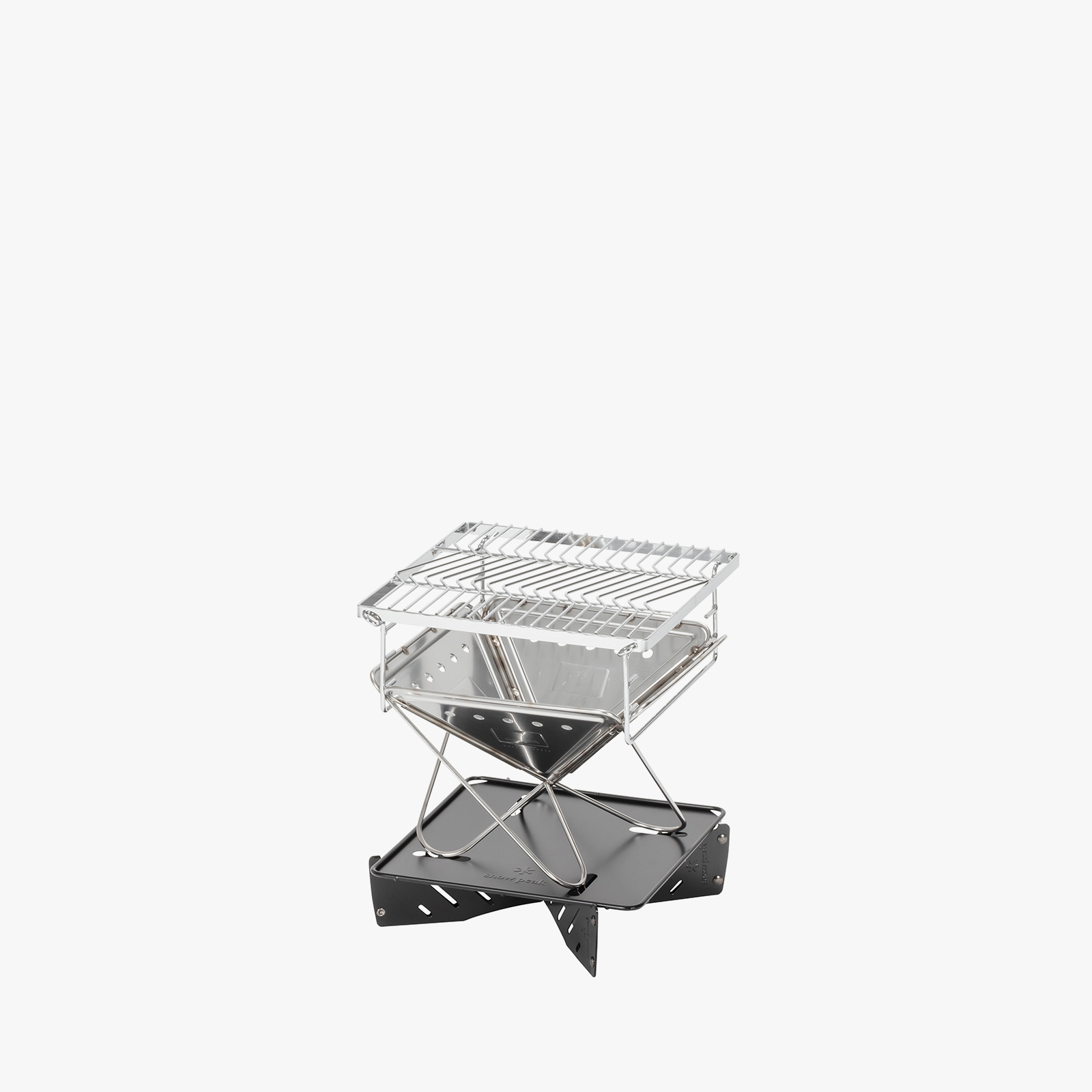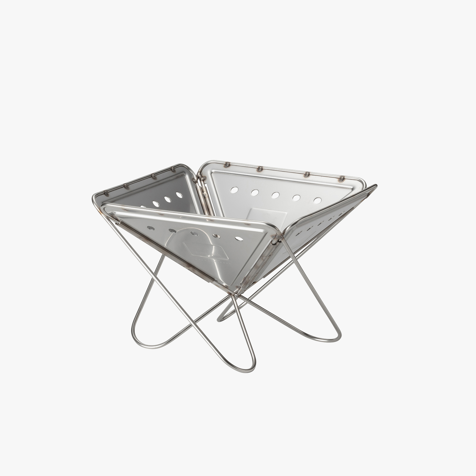 컴팩트하게 운반할 수 있는 구조로 디자인하여 수납 또한 편리합니다. 스테인리스 재질은 강한 열에도 견딜 수 있도록 두께까지 섬세하게 조정하여 디자인하였습니다. 또한 역삼각형 뿔 모양의 디자인은 장작이나 숯의 연소를 촉진합니다.