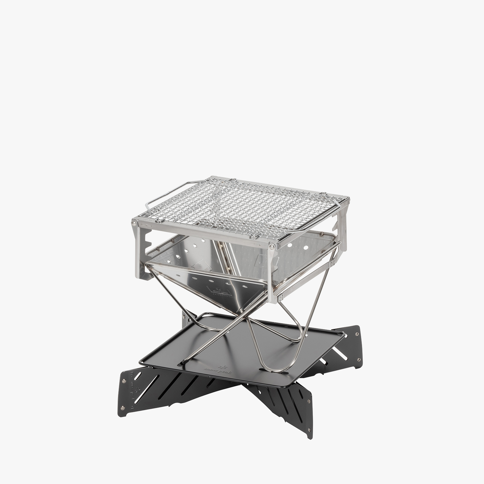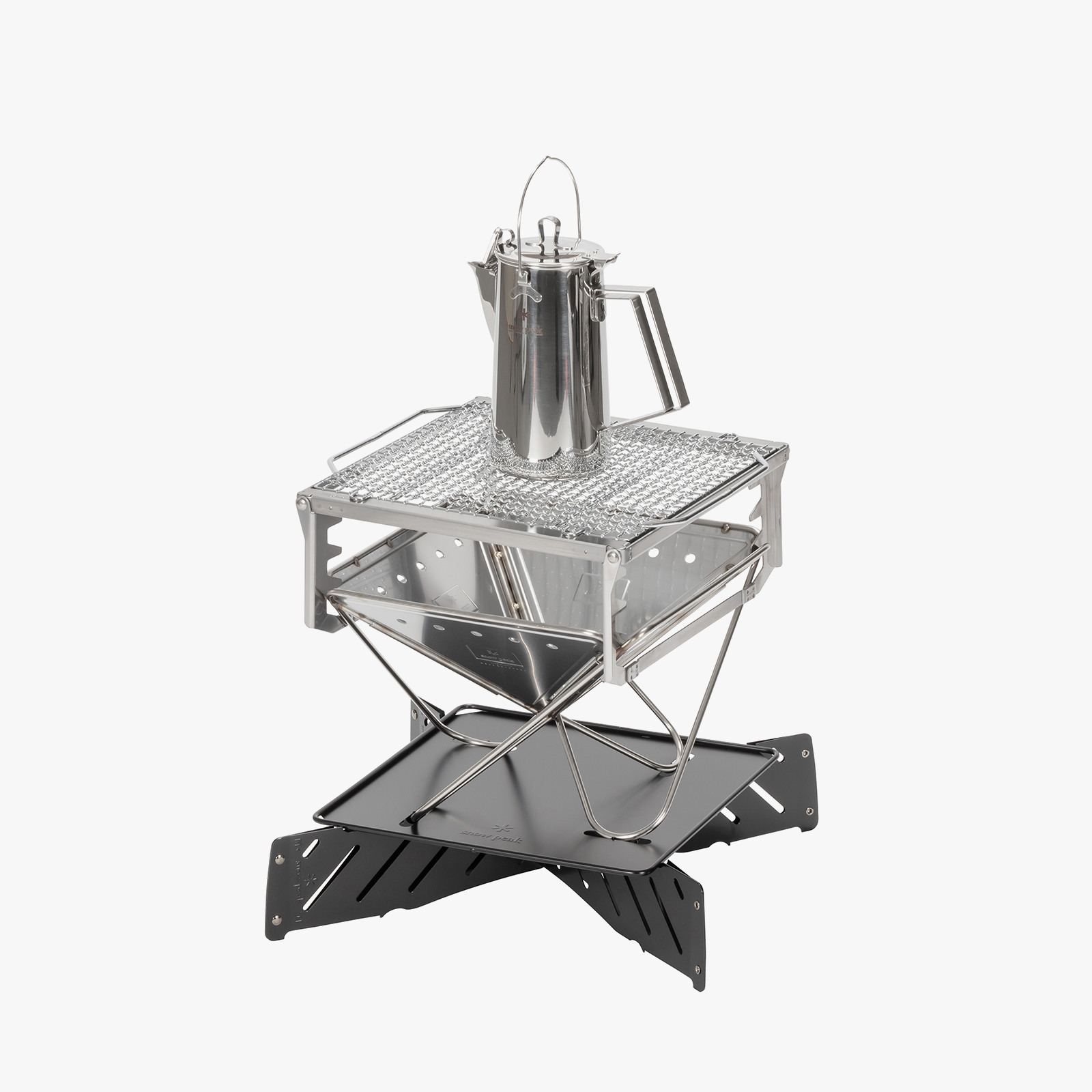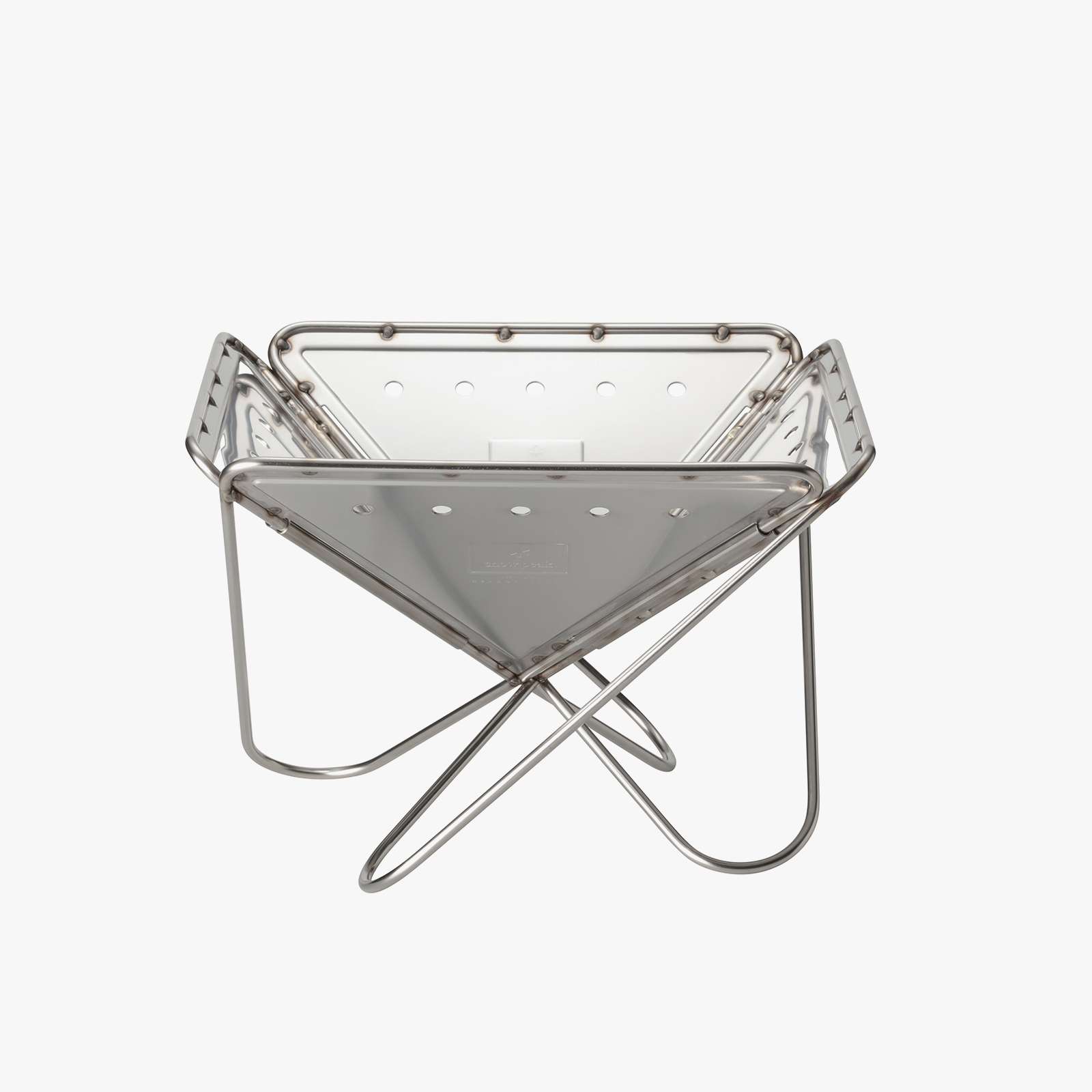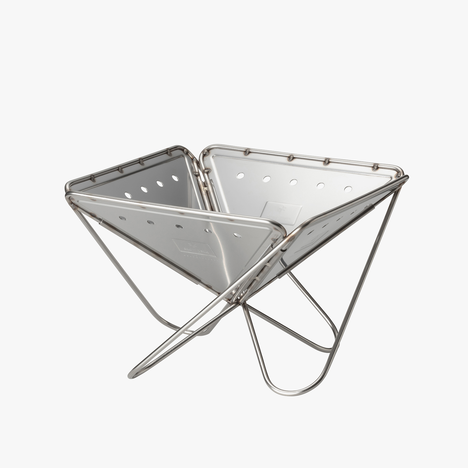 컴팩트하게 운반할 수 있는 구조로 디자인하여 수납 또한 편리합니다. 스테인리스 재질은 강한 열에도 견딜 수 있도록 두께까지 섬세하게 조정하여 디자인하였습니다. 또한 역삼각형 뿔 모양의 디자인은 장작이나 숯의 연소를 촉진합니다.