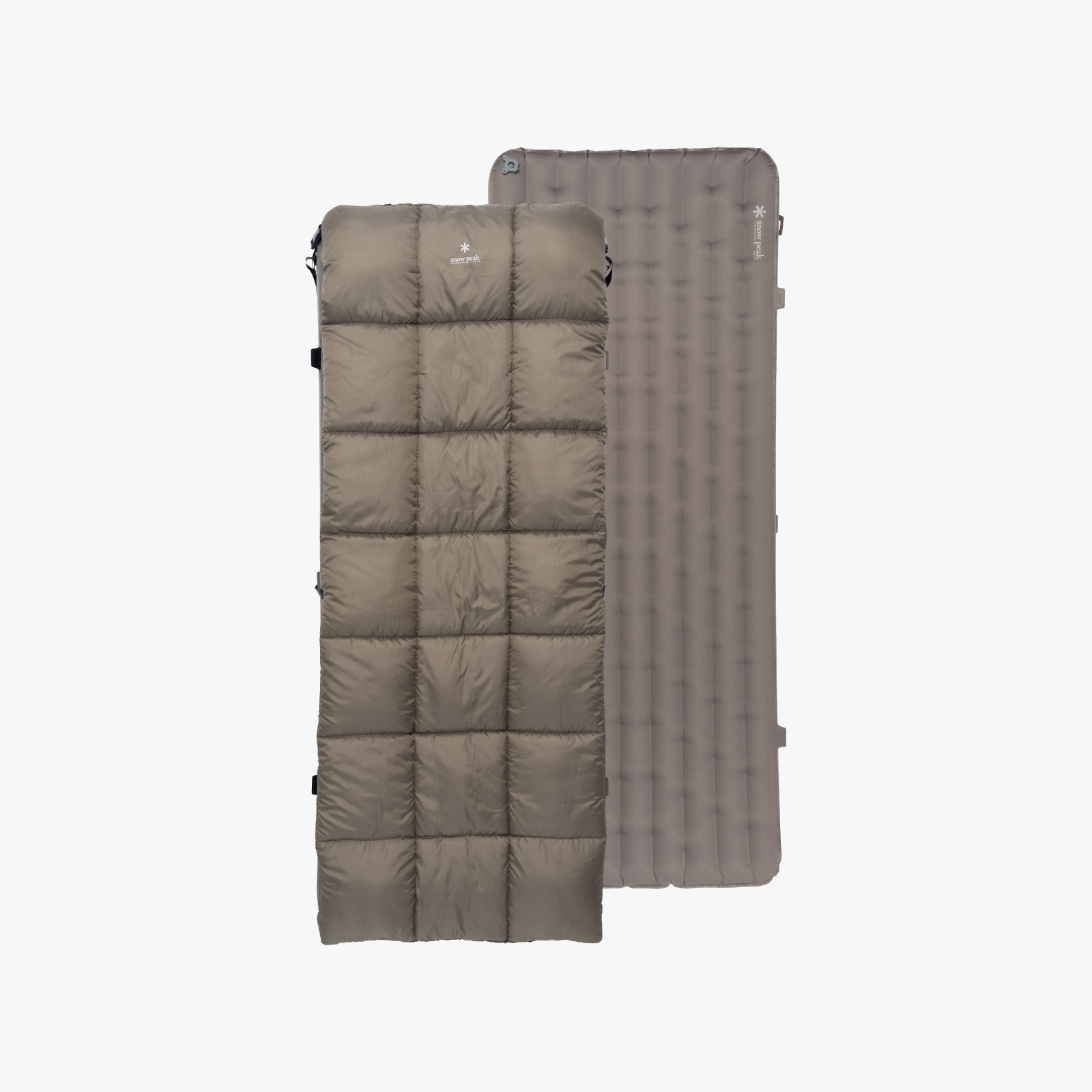 캠핑 중에도 마치 집에서 잠드는 듯한 편안함으로 깊은 숙면을 제공해주는 스노우피크의 ‘오프톤’ 시리즈. ‘시스템 오프톤’ 시리즈는 이불 형식을 적용하여 세트 상품으로 출시되었습니다. 이불의 주요 충전재로는 따뜻한 다운을 사용했으며, 계절에 따라 온도를 손쉽게 조절할 수 있습니다. 두꺼운 슬림형 에어매트(TM-088)와 조합된 침구 세트로 여러 계절에 대응합니다. 또한 여섯 곳에 고정 포인트가 있어, 뒤척일 때 방해받지 않으면서도 이불이 밀리거나 흐트러지지 않도록 설계되었습니다.