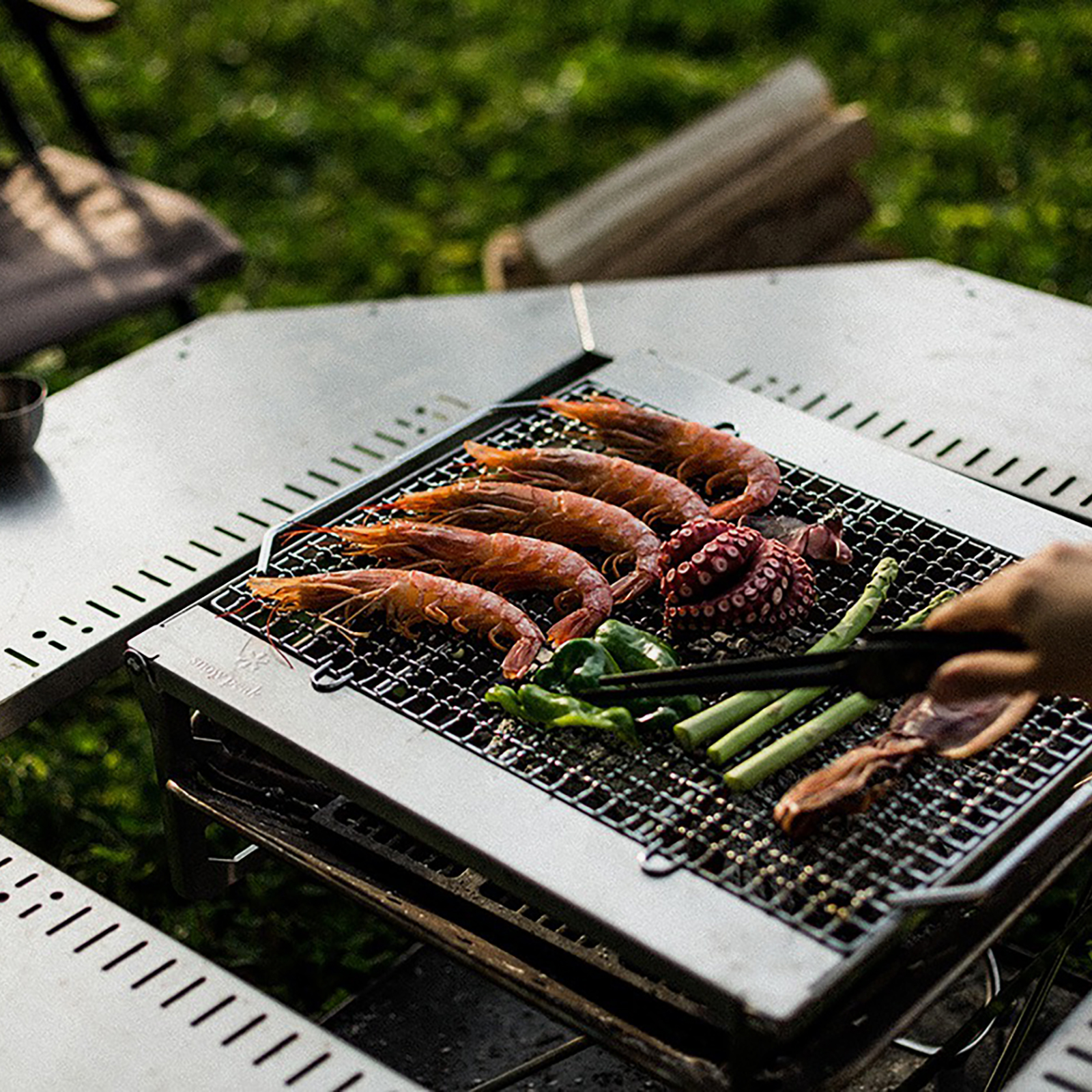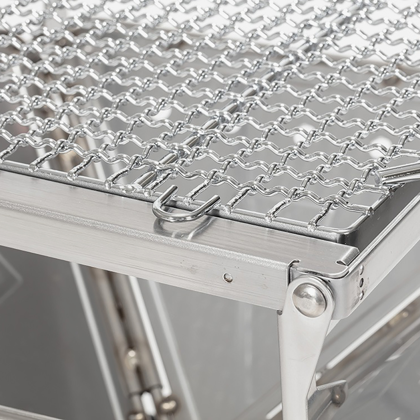 스테인리스 소재 모닥불의 막강한 열량에도 견디는 튼튼한 그릴넷으로, 부식 성능이 향상되어 녹슬지 않게 설계되었습니다.