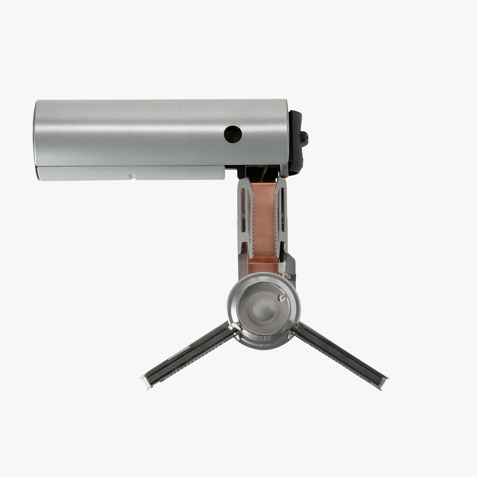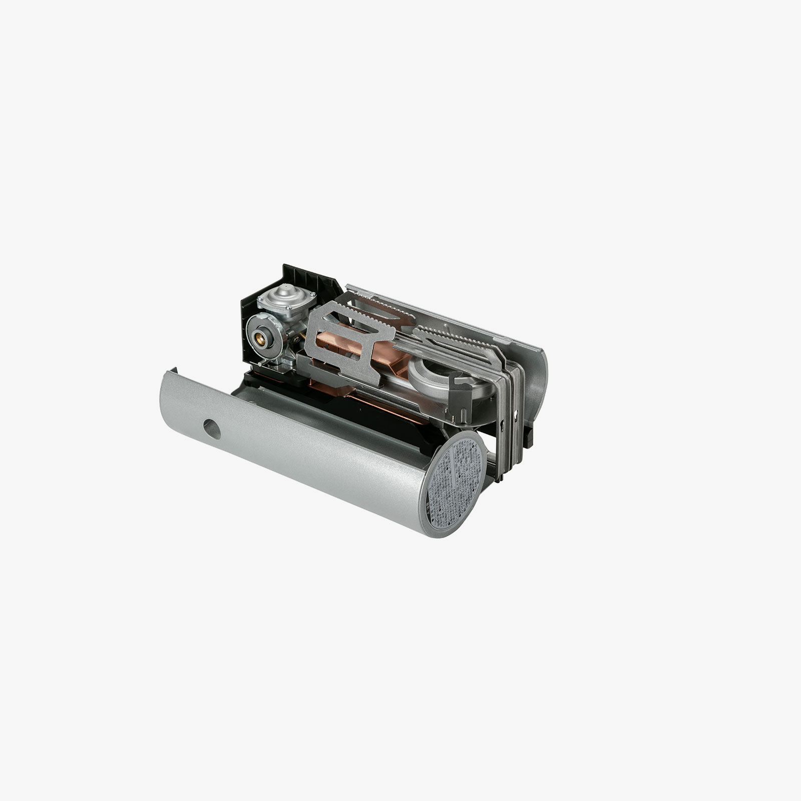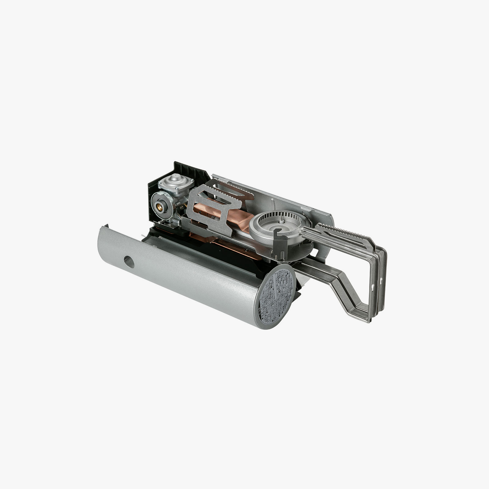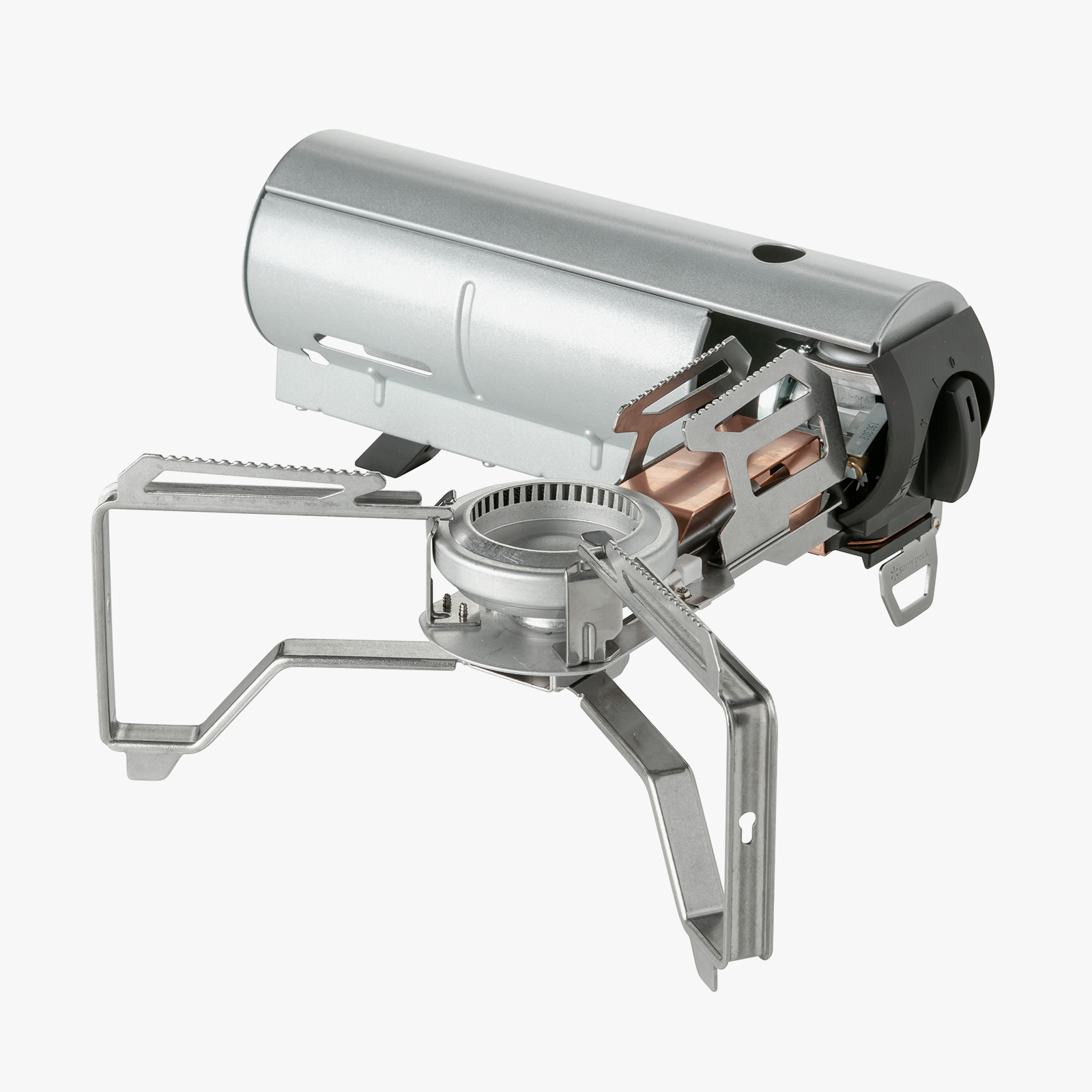 일반 버너 스토브에서 크게 면적을 차지하는 냄비 받침 부분을, 가스캔을 넣는 본체 부분에 수납함으로서 심플하고 깔끔한 디자인을 실현