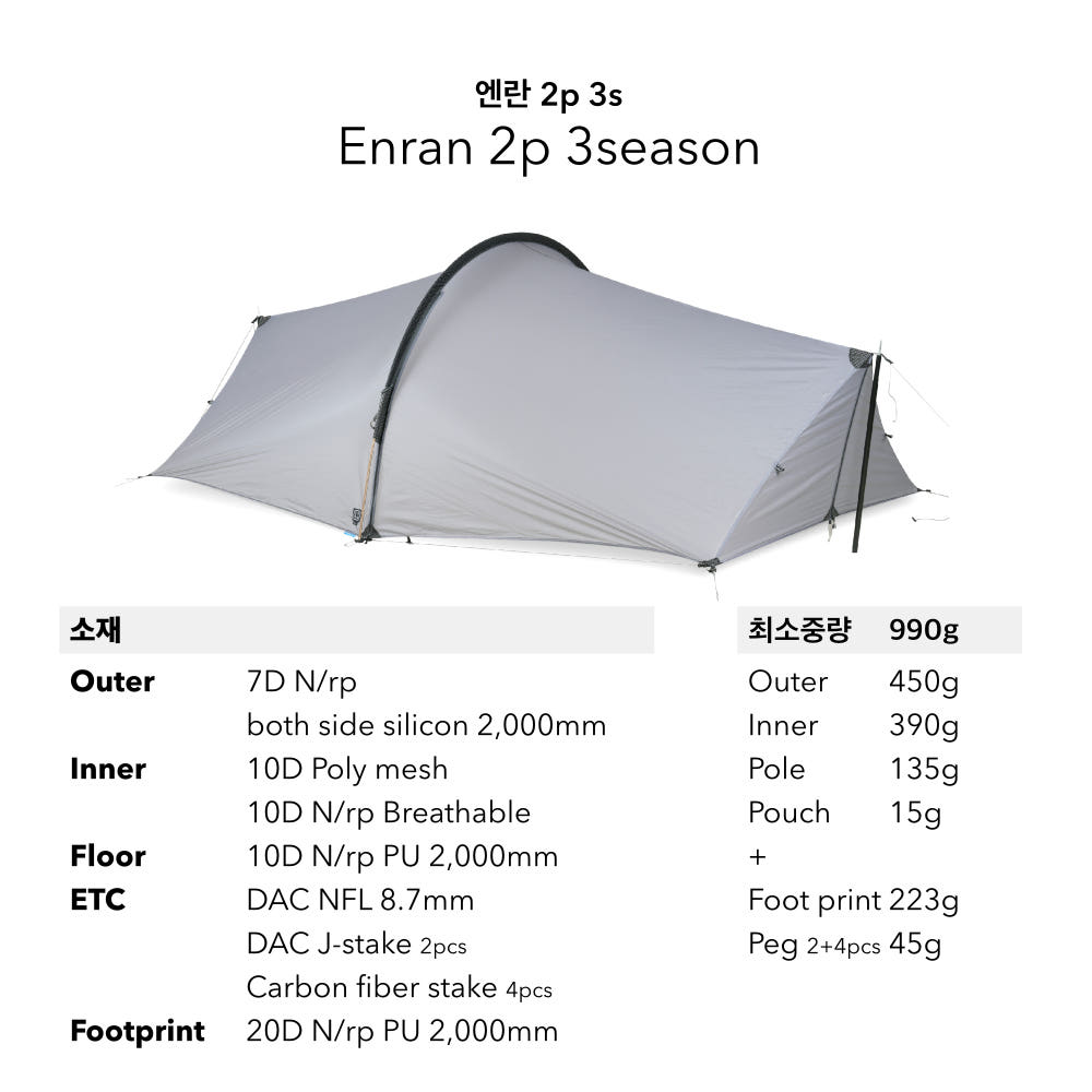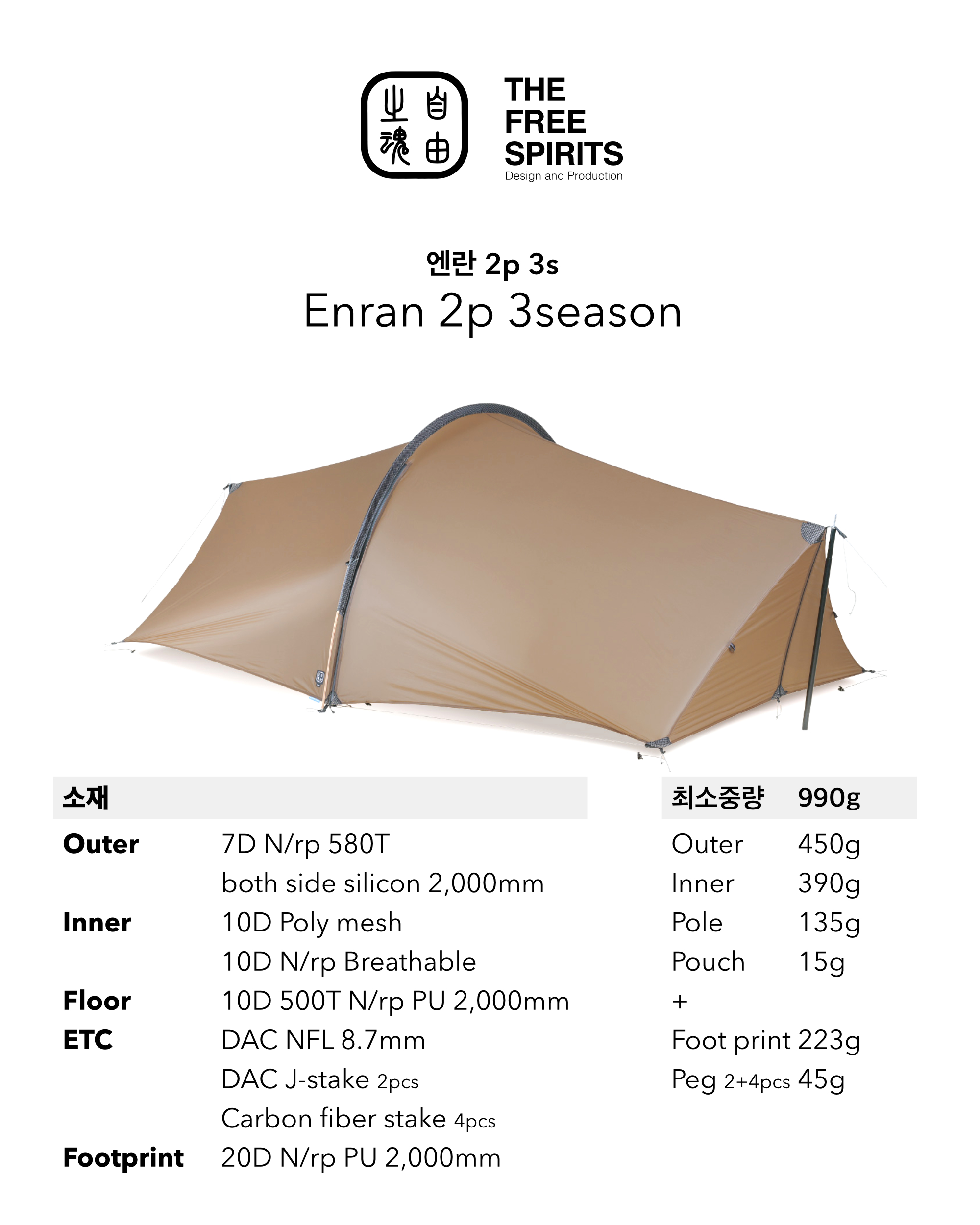 TFS Enran 엔란 2P 백패킹 초경량 1-2인용 브라운 BLUE LABEL 텐트