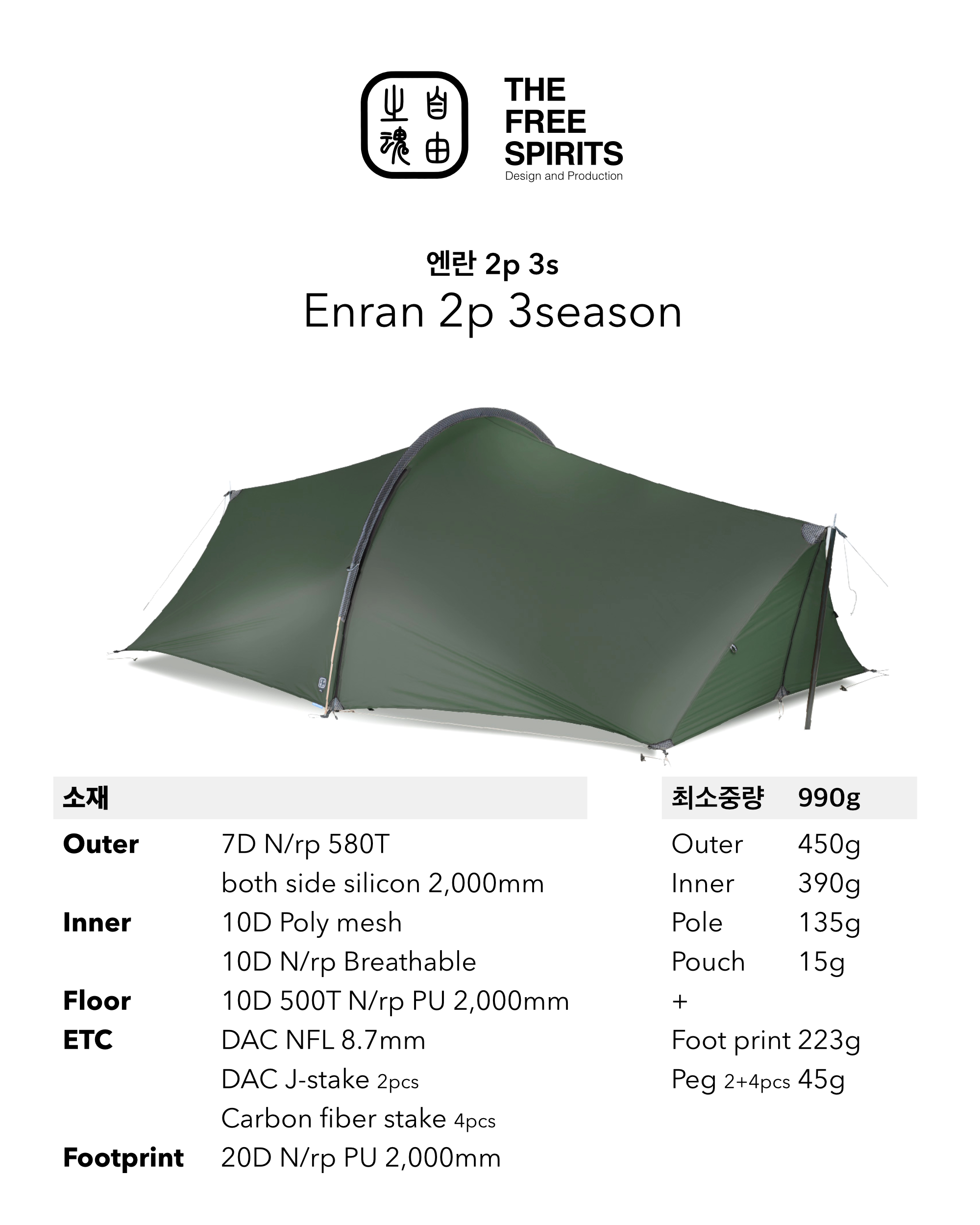 TFS Enran 엔란2P 백패킹 초경량 1-2인용 그린 BLUE LABEL 텐트BEST
