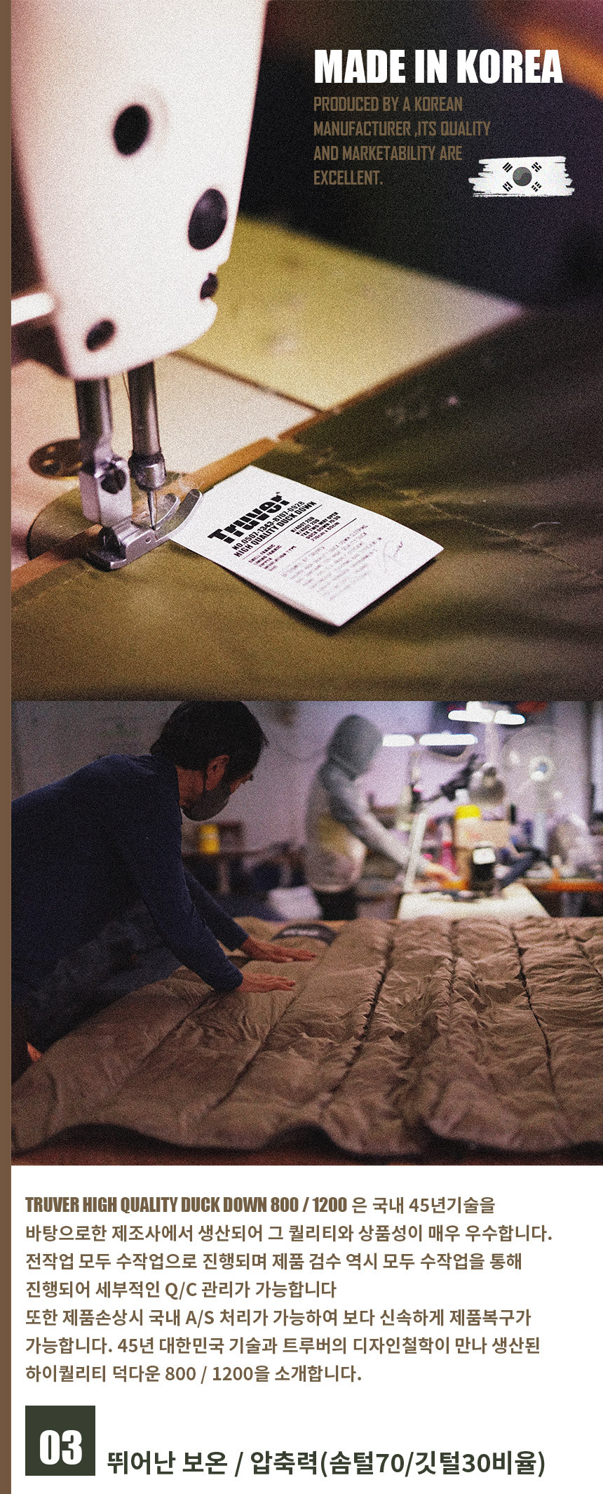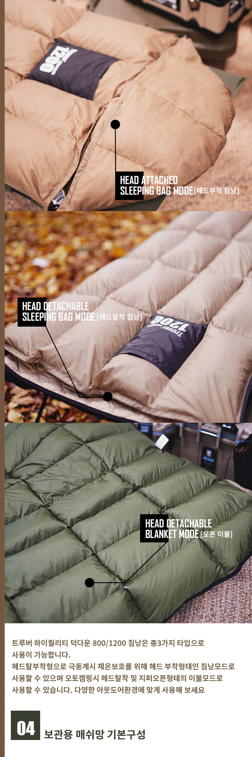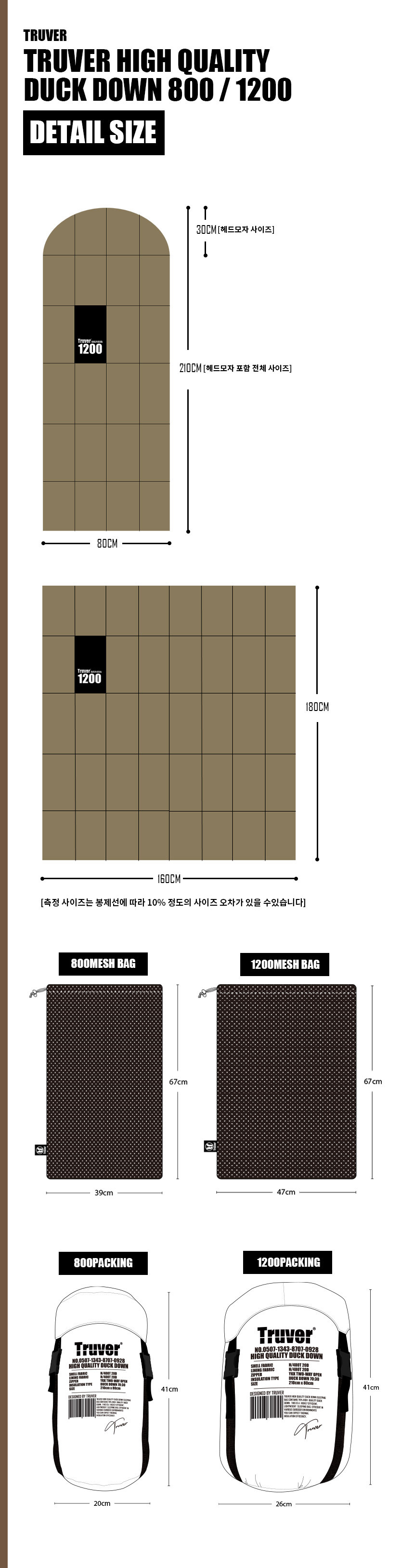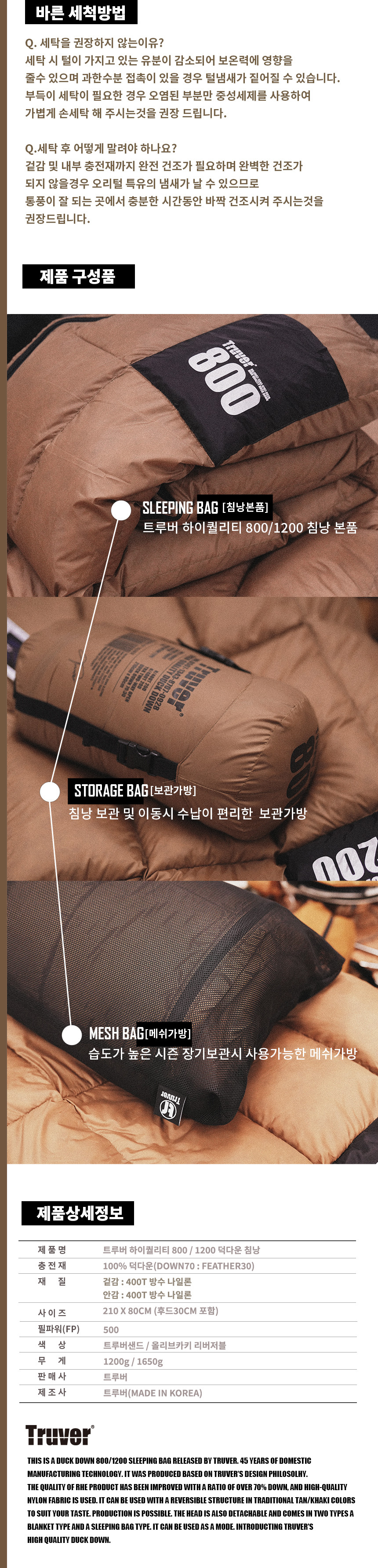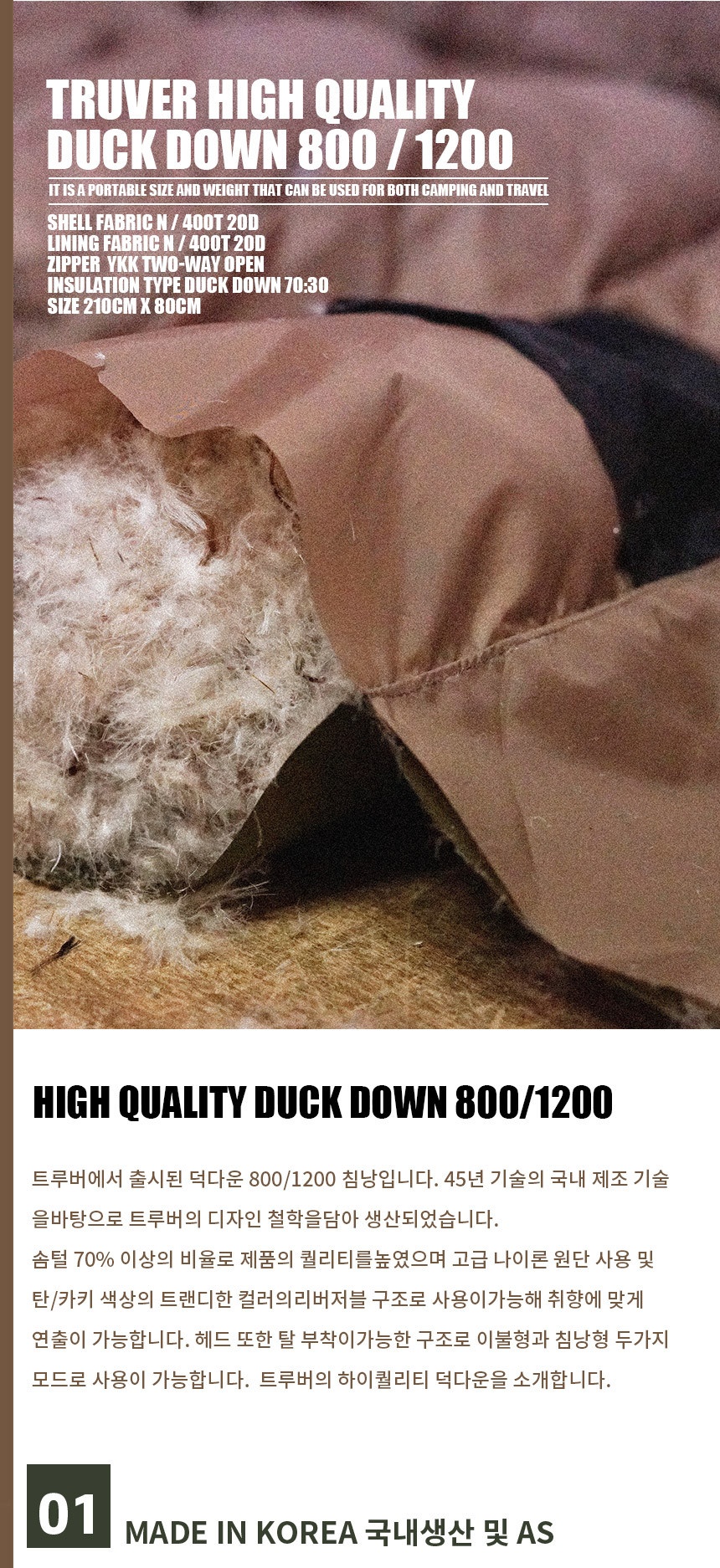 트루버 국산 덕다운 침낭 겨울 캠핑이불 동계 백패킹 오리털침낭 800g
